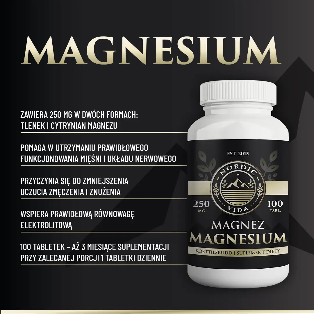 Magnez marki Nordic Vida to suplement diety opracowany z myślą o codziennym uzupełnianiu tego ważnego składnika mineralnego.