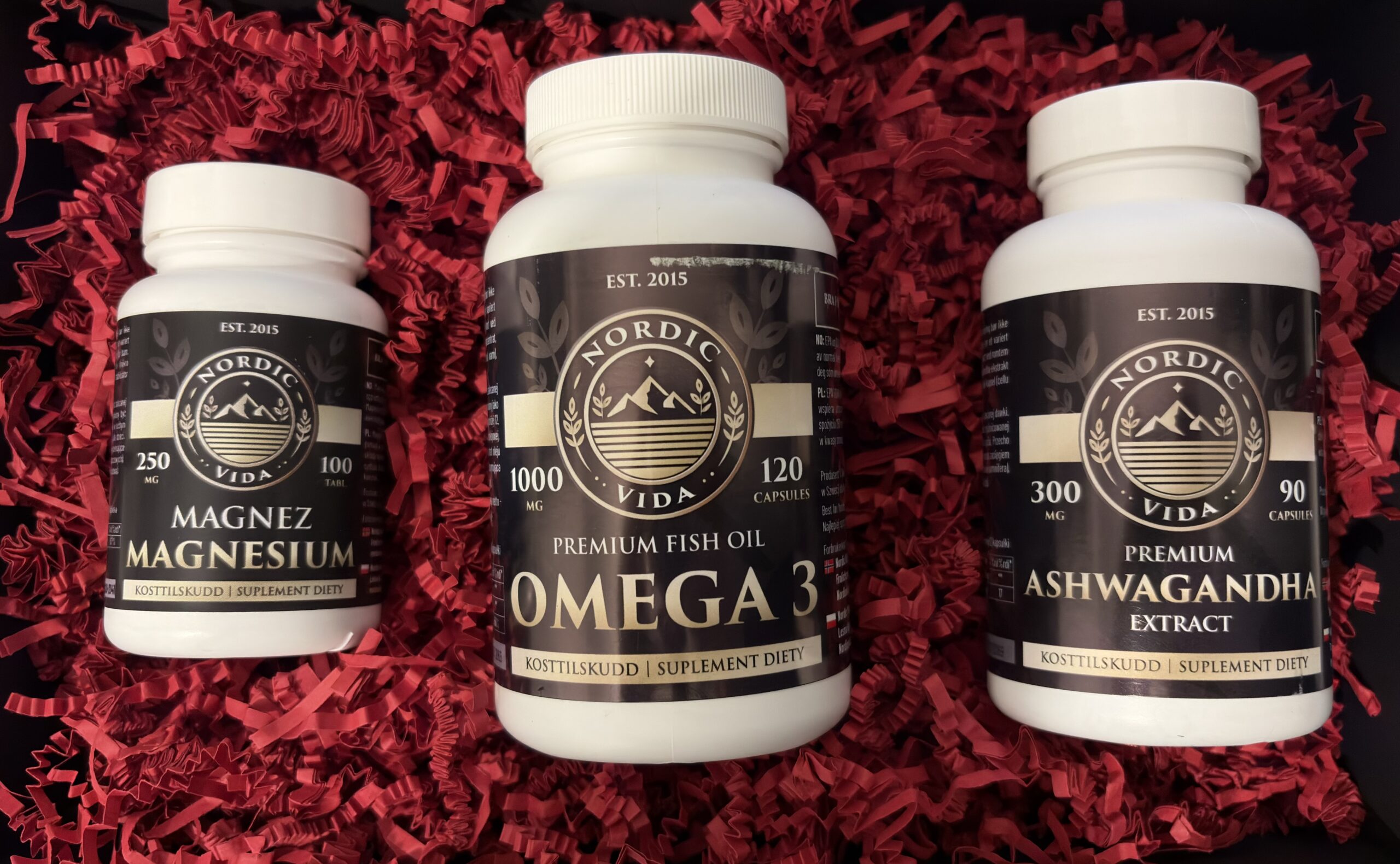 Elegancki zestaw trzech kluczowych suplementów w jednym ładnym opakowaniu prezentowym – gotowy do wręczenia bliskiej osobie lub… samemu sobie.